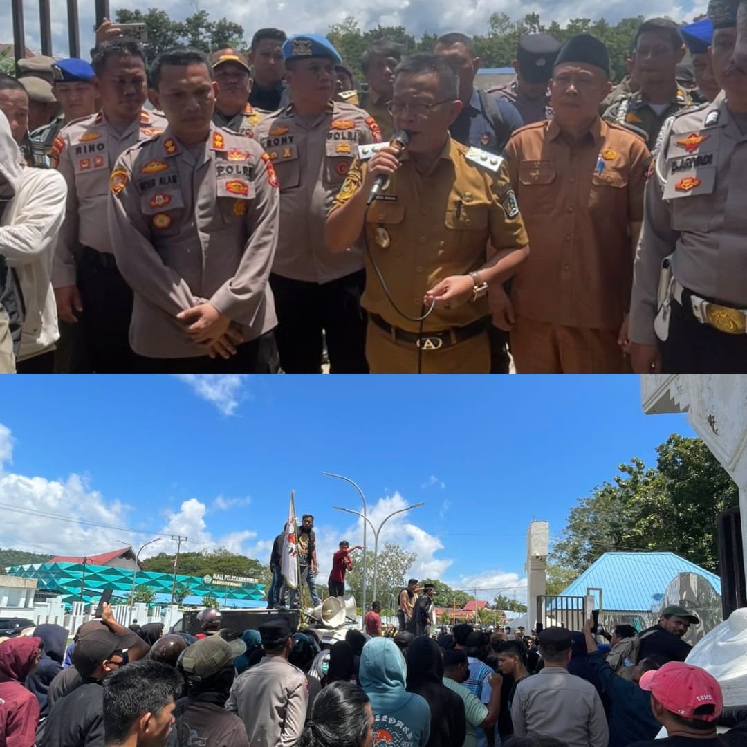 “Bagi keluarga besar Routa tolong dijaga persaudaraan, aspirasi silahkan tidak boleh ada yang sifatnya anarkis karena ketika kita merusak ketika kita anarkis maka itu sama dengan kita suruh APH untuk memproses kita, bukan maunya Kapolres tetapi atas perintah undang undang dan itu terjadi atas permintaan kita karena kita sudah merusak sesuatu yang menjadi sebab musabab kita merusak sesuatu yang bisa membuat kita ditersangkakan oleh aparat jadi,” tegas Wabup Konawe.