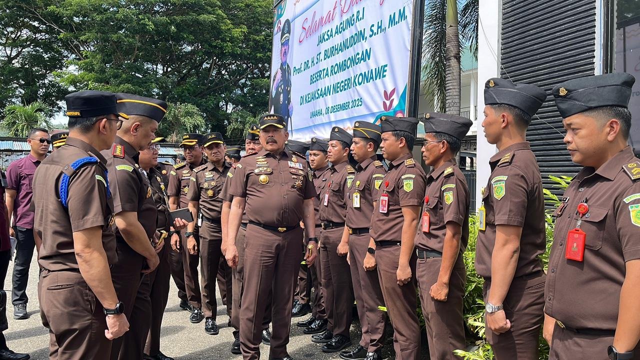 Jaksa Agung Prof. Dr. H. ST. Burhanuddin saat melakukan kunjungan kerja (kunker) di Kejari Konawe dalam rangka evaluasi kinerja. Senin (8/12/2025) Konawe, Ntrinews.com – Jaksa Agung Prof. Dr. H. ST Burhanuddin, S.H.,M.M, melakukan kunjungan perdananya di Provinsi Sulawesi Tenggara (Sultra), Senin (08/12/2025).