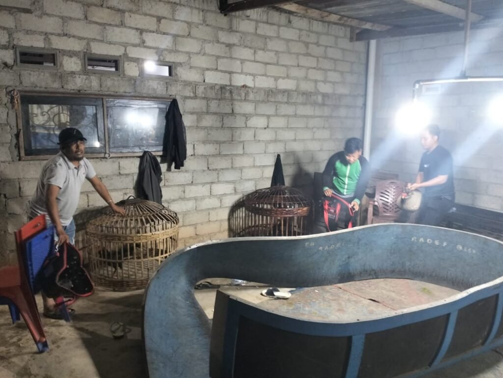 Barang bukti berupa lima ekor ayam bangkok, dua arena atau ring sabung ayam, dan uang tunai sebesar Rp1 Juta yang diduga hasil taruhan disita polisi.
