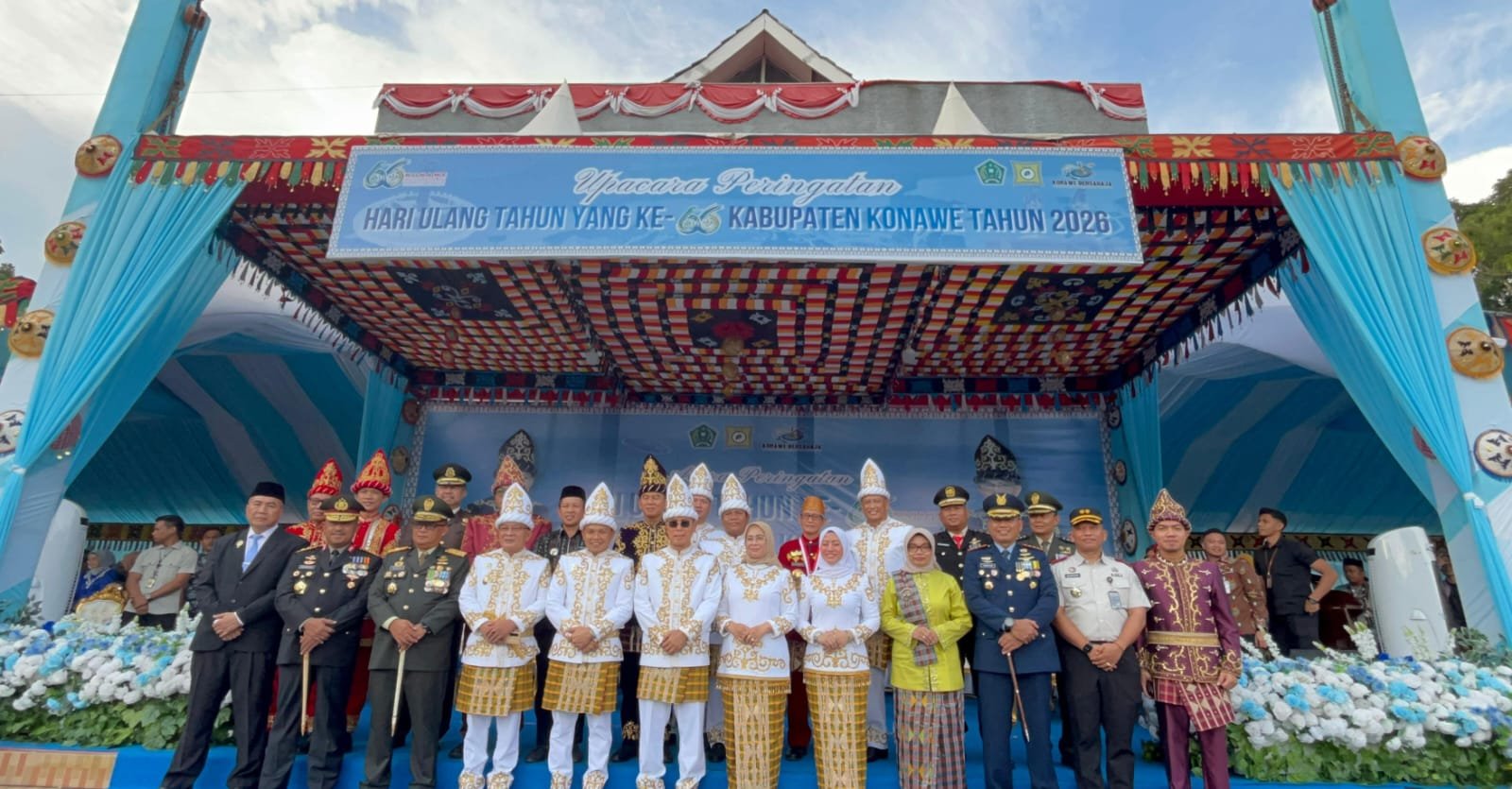 Konawe, Ntrinews.com – Gubernur Provinsi Sulawesi Tenggara Andi Sumangerukka pimpin upacara peringatan hari ulang tahun Kabupaten Konawe yang ke-66 Tahun.