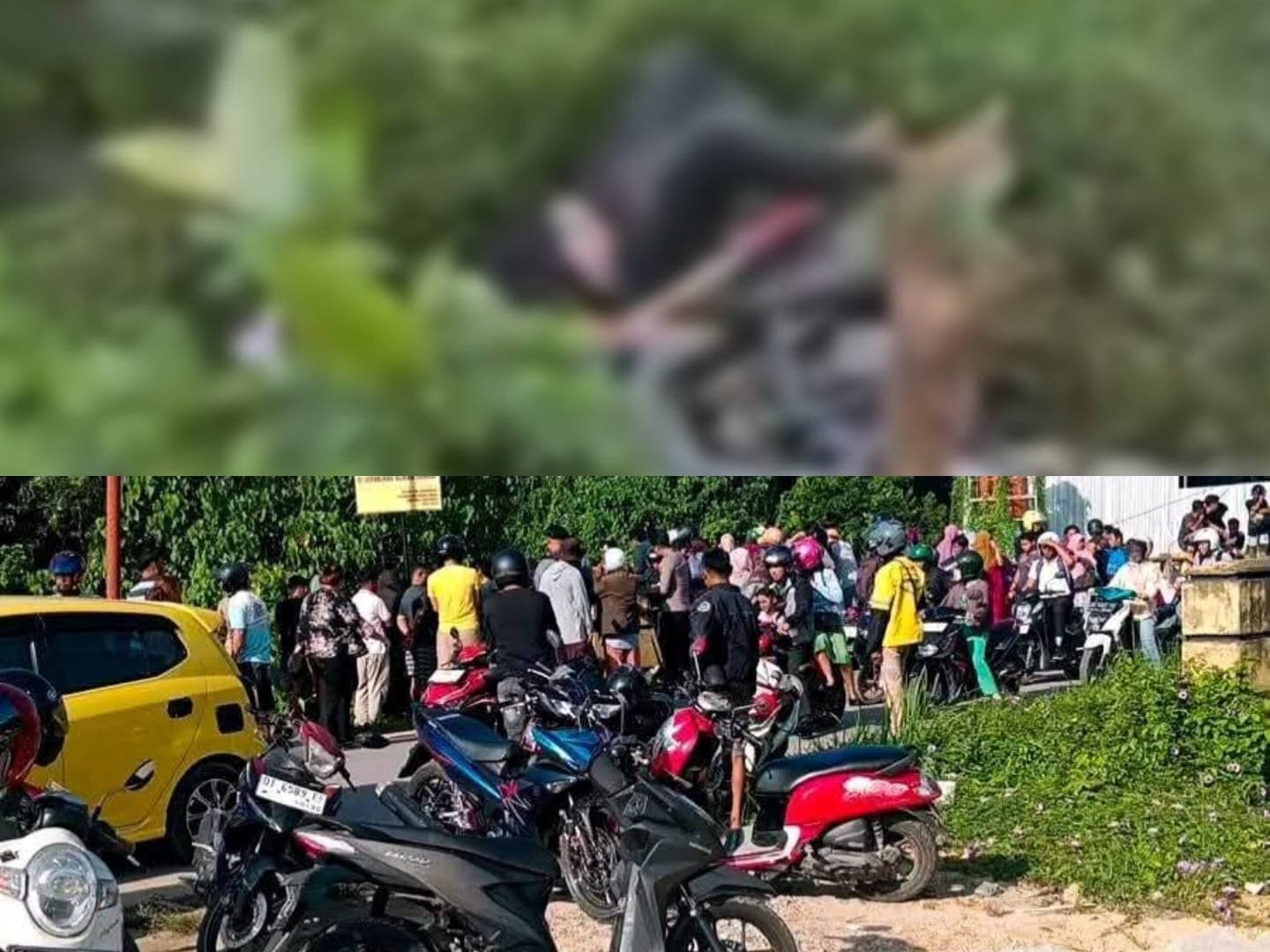 Di samping jasad, terdapat sebuah sepeda motor CRF berwarna hitam merah diduga milik korban.