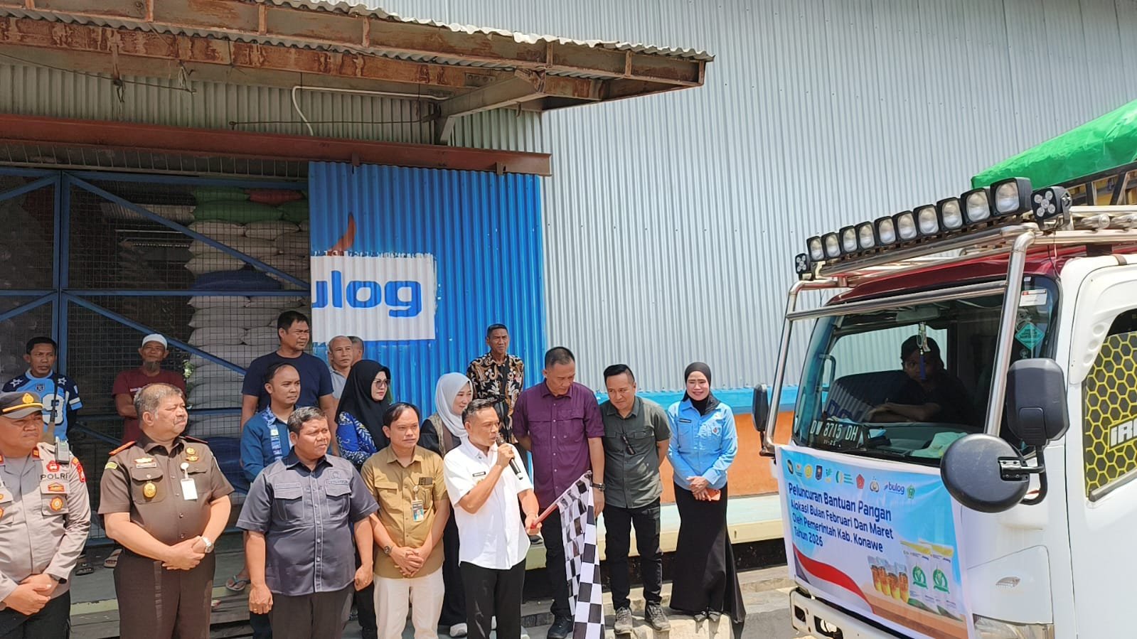Peluncuran distribusi bantuan pangan ini secara simbolis dilepas oleh Bupati Yusran Akbar didamping Pimpinan Cabang Bulog KC Unaaha Hendra Dionisius, di Kompleks Pergudangan Tuoy Kecamatan Unaaha. Kamis (26/3/2026) pagi.