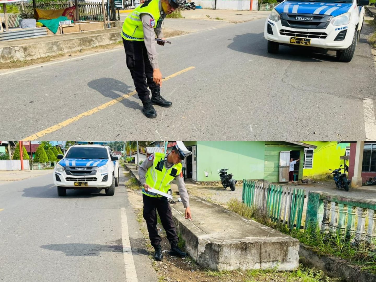 Satlantas Polres Konawe Utara saat melakukan olah Tempat kejadian perkara (TKP) kecelakaan maut tewaskan seorang pengendara motor di Kecamatan Lembo Kabupaten Konawe Utara. Sabtu (14/3/2026) siang Konawe Utara, Ntrinews.com – Seorang pengendara motor meninggal dunia dalam insiden kecelakaan yang terjadi di Jalan Poros Trans Sulawesi, tepatnya di Kelurahan Lembo, Kecamatan Lembo, Kabupaten Konawe Utara. Sabtu (14/3/2026) siang.