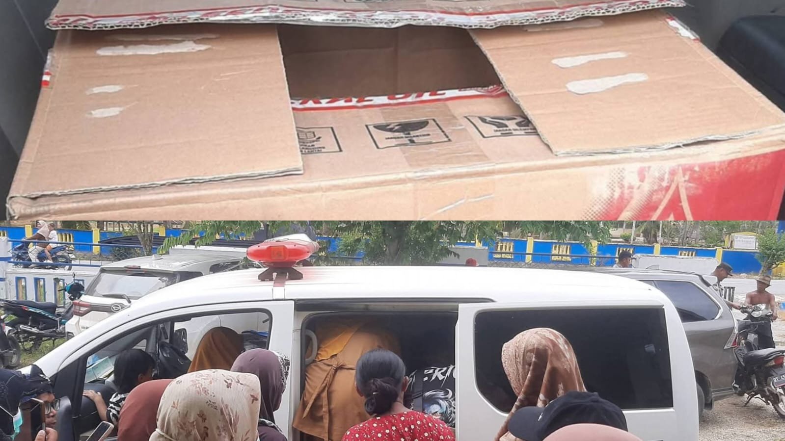 Berawal saat Warga melihat sebuah dus mencurigakan di depan kios diketahui milik mujiati sekitar pukul 09.23 WITA